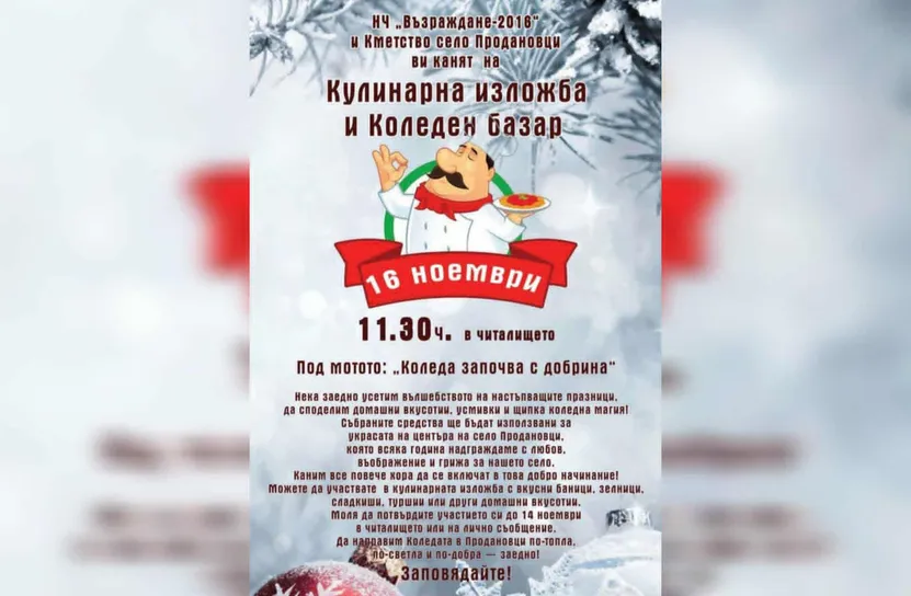 Кулинарна изложба и базар ще събират средства за село Продановци