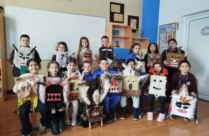 Ученици от СУ "Васил Левски“ откриха магията на кукерите и българските обичаи