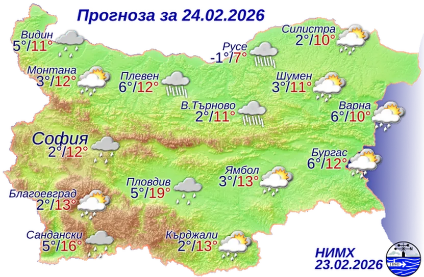 Времето на 24 февруари 2026 г.