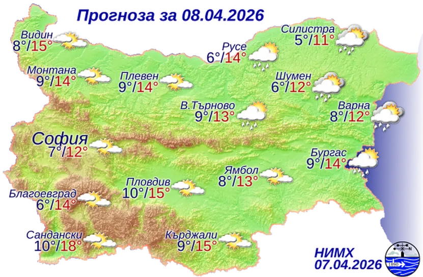 Времето на 8 април 2026 г